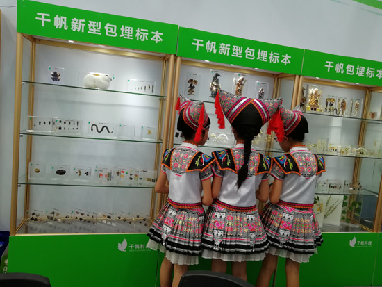 展會現(xiàn)場-千帆展示了DIY學生實驗制作解決方案產(chǎn)品、新型包埋標本、中小學標包埋標本、學前教育益智等系列產(chǎn)品